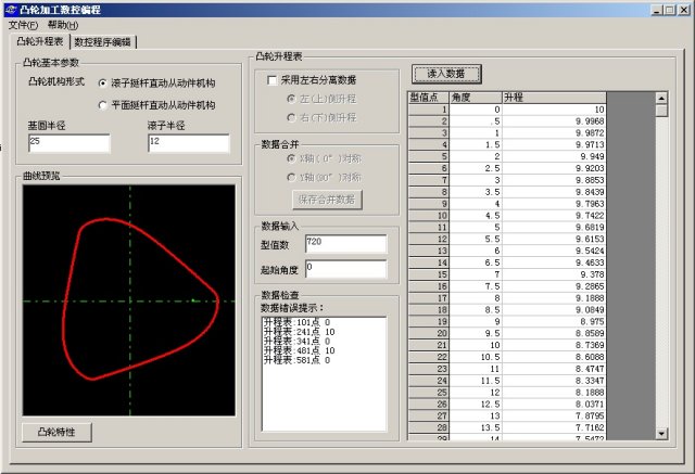 本公司生產(chǎn)的數(shù)控高速曲軸(凸輪軸)銑床采用盤銑刀點跟蹤方式高速銑削各種非圓截面。為精確加工各種汽油發(fā)動機(jī)凸輪軸、柴油發(fā)動機(jī)凸輪軸、供油泵凸輪軸等,本公司開發(fā)了《凸輪軸加工NC 程序編程系統(tǒng)》軟件。
